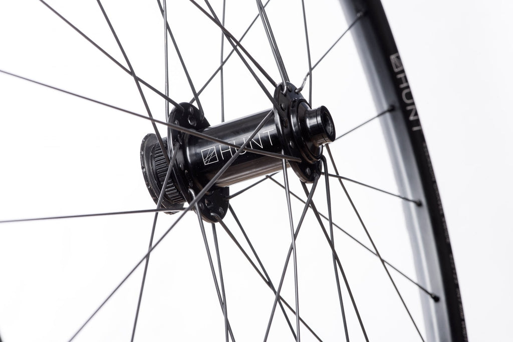 RimsTubeless-ready – designed to work excellently with normal clincher tyres and tubes or tubeless tyres. HUNT Black Shield tubeless rim tape and valves included. Hooked H_Lock bead-seat up-kicks for easy and secure tubeless installation. 6066-T6 (+34% tensile strength vs 6061-T6) heat-treated aluminium alloy Asymmetric to balance spoke tensions. Disc-specific tubeless-ready profile. 29mm outer and 25mm inner width. 19mm depth Matt black anodized finish with laser etched graphics for excellent durability.