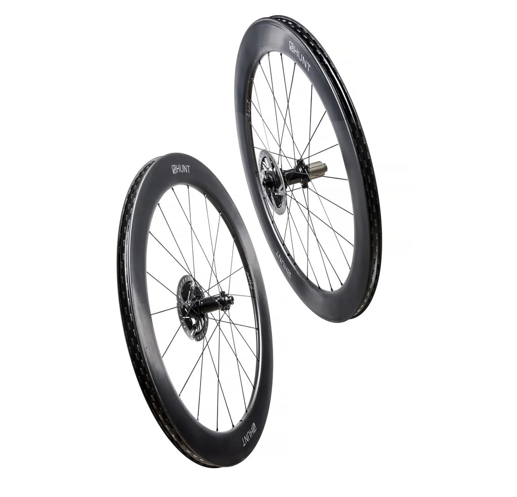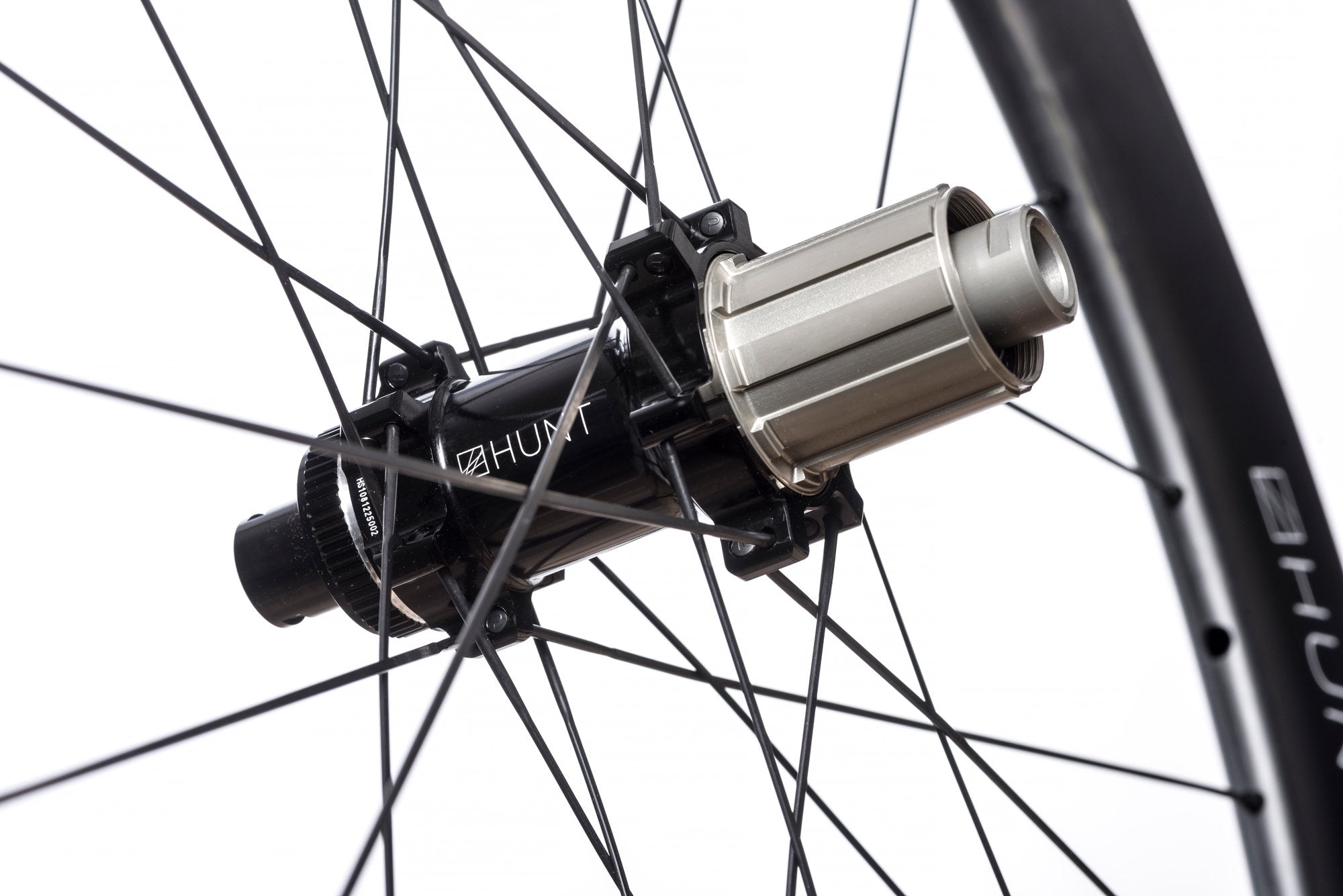 Rear Hub7075-T6 heat-treated aluminium alloy freehub body. Steel Spline Insert freehub body reinforcement provides excellent durability against cassette sprocket damage to the freehub often seen on standard alloy freehub bodies. 3x treble-tooth individually leaf sprung pawls with 48 teeth on the ratchet ring for fast 7.5 degree engagement and instant acceleration. All freehub standards accounted for. Hunt Race Season Disc straight-pull super-light alloy. Forged and CNC’d 6061-T6 heat treated aluminium alloy body. 7075-T6 aluminium alloy axles. Center-lock disc mount. If you require a 6 bolt adaptor you can purchase separately here Polished anodized black finish with laser graphics.