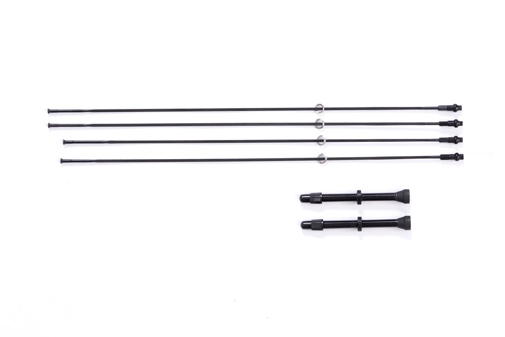 Spokes20 front and 24 rear, laced 2-cross. Aero Butted 2.0-2.2/0.95-2.0 then PSR section is 2.2. Straight-pull, for excellent torsional strength and direct power transfer Cold drawn from high grade T302 (18/10) stainless steel wire by Sandvik Sweden Patented Pillar Spoke Re-enforcement (butted again just before the spoke head, providing more durability in high stress area). Black stainless finish.