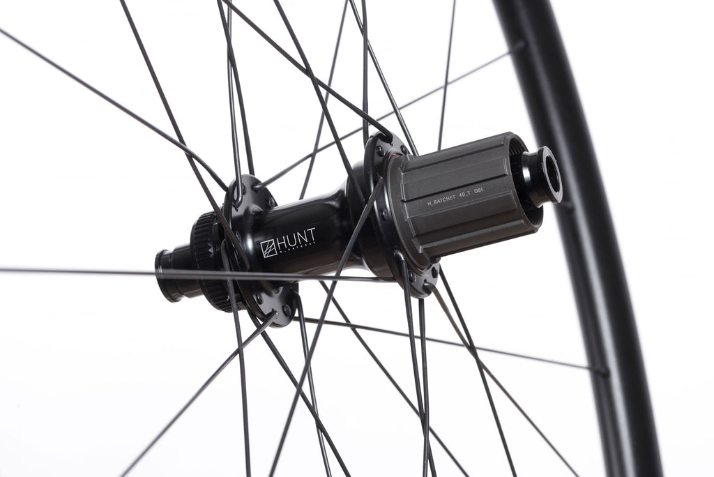 Rear HubHUNT 4 Season H_Ratchet DBL Hubs. 40t ratchet rings on floating carrier for 9˚ engagement. H_Ceramik freehub body reinforcement coating provides excellent durability and protects against cassette sprocket damage to the freehub often seen on standard alloy freehub bodies. All freehub standards accounted for. 6066-T6 heat-treated aluminium alloy hub shell. Machined angled spoke flanges for better bracing angles. Center-lock disc mount. If you require a 6 bolt adaptor you can purchase separately here. Polished anodized black finish with laser graphics.
