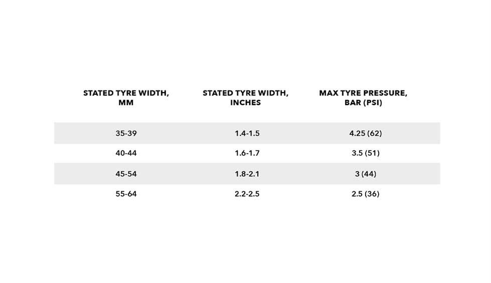 Tyres InfoHUNT recommends a 40-45mm tyre for best performance, tyre widths between 35mm and 60mm are also safe to use. You must not exceed the maximum tyre pressure limits set out in the table below or the maximum limit set by your tyre manufacturer if this is lower. Only use tyres suitable for hookless (TSS) rims. If unsure, please contact the tyre manufacturer. Leading brands, including Schwalbe, Continental and Vittoria, have many tyres suitable for hookless TSS rims. Note: best performance is usually gained by using tyre pressures lower than the maximum, you can see our blog post here about this. Tubeless-ready for lower weight and rolling resistance.