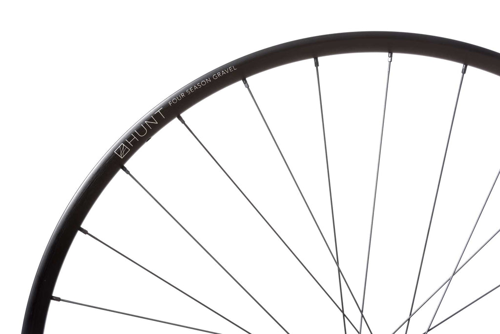28 spokes laced 2-cross front and rear.  J-bend spoke interface allows for easy sourcing and replacement in remote locations.  Patented Pillar Spoke Re-enforcement (PSR) with increased 2.2mm thickness at spoke butted again just before the spoke end, providing more durability in high stress area.          Triple butted 2.0-1.6-2.0 Pillar Spokes (then 2.2 at the head for the patented Pillar Spoke Re-enforcement).  Cold drawn from high grade T302 (18/10) stainless steel wire by Sandvik Sweden.  Black stainless treatment.  All HUNT wheels are built and finished by hand, inclusive of a full quality control inspection card.