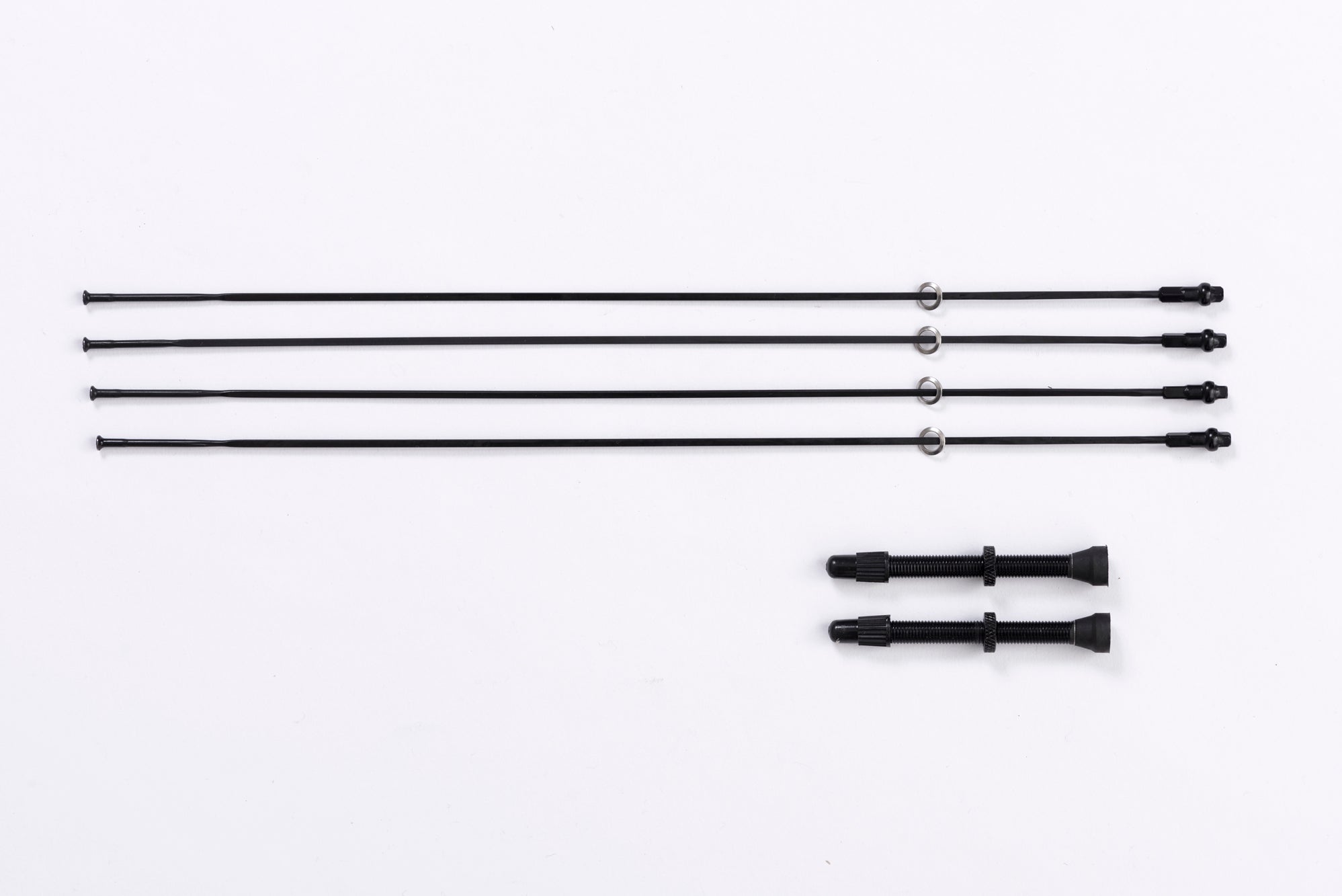 SpokesPillar Wing 20 with Aerofoil profile 20 front and 24 rear laced 2 cross. Aero Butted 2.0-2.2/0.95-2.0 then PSR section is 2.2. Straight-pull for excellent torsional strength and direct power transfer Cold drawn from high grade T302 (18/10) stainless steel wire by Sandvik Sweden Patented Pillar Spoke Re-enforcement, butted again just before the spoke head providing more durability in high stress area. Black stainless treatment
