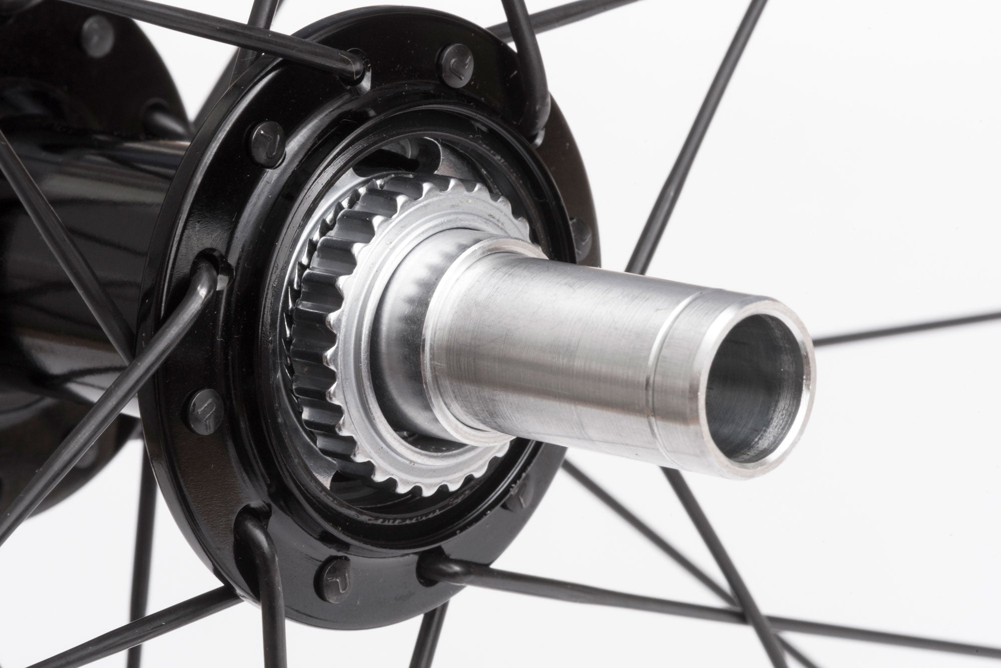 Rear HubHUNT H_Ratchet 36T SGL H_CERAMIK freehub body reinforcement coating provides excellent durability and protects against cassette sprocket damage to the freehub often seen on standard alloy freehub bodies. Ships with Dumonde Tech Pro X freehub grease applied for long service life and contamination resistance. Single 36T Ratchet Ring equals 10° engagement. Forged and CNC’d 6061-T6 heat treated aluminium alloy body. 7075-T6 aluminium alloy axle. Polished anodized black finish with laser graphics. All freehub standards accounted for. Please note: If you require a 6 bolt adaptor you can purchase separately here.