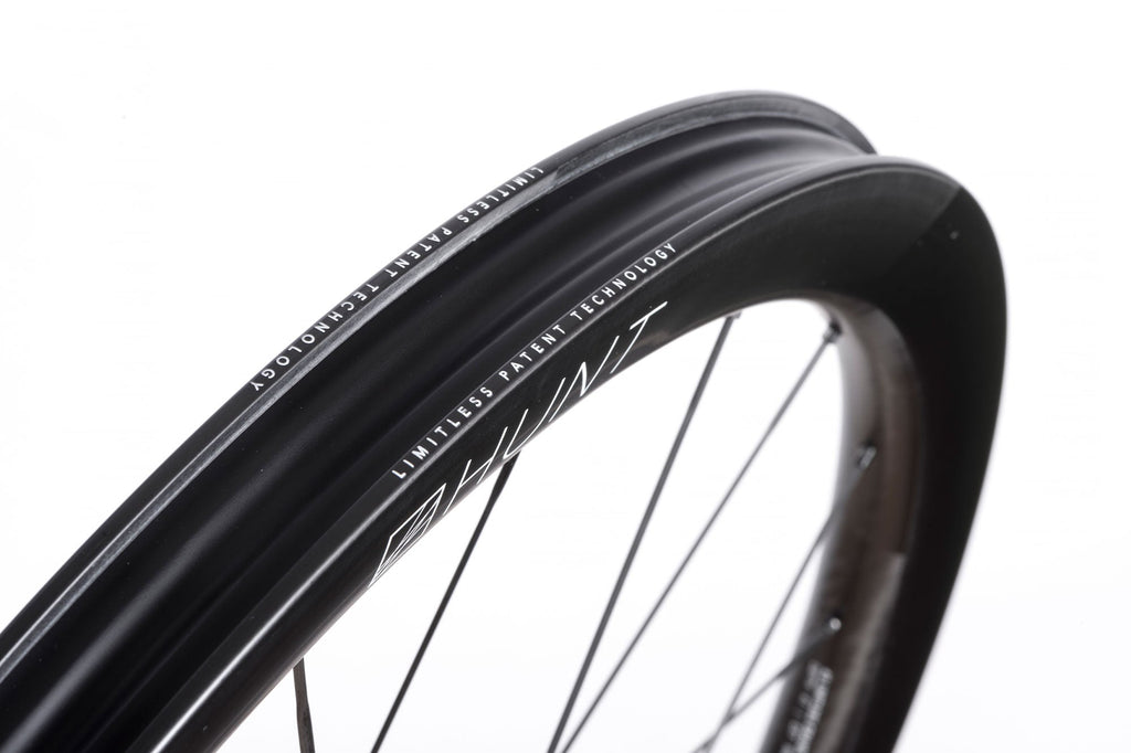 Tyres InfoHUNT recommends a 40-45mm tyre for best performance, tyre widths between 35mm and 60mm are also safe to use. You must not exceed the maximum tyre pressure limits set out in the table below or the maximum limit set by your tyre manufacturer if this is lower. Only use tyres suitable for hookless (TSS) rims. If unsure, please contact the tyre manufacturer. Leading brands, including Schwalbe, Continental and Vittoria, have many tyres suitable for hookless TSS rims. Note: best performance is usually gained by using tyre pressures lower than the maximum, you can see our blog post here about this. Tubeless-ready for lower weight and rolling resistance.