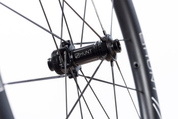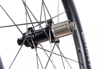 Rear HubHUNT Sprint SLC straight-pull hubs. Steel Spline Insert freehub body reinforcement provides excellent durability against cassette sprocket damage to the freehub often seen on standard alloy freehub bodies. 3x treble-tooth individually leaf sprung pawls with 48 teeth on the ratchet ring for fast 7.5 degree engagement and instant acceleration. All freehub standards accounted for. 7075-T6 aluminium alloy axles. Forged and CNC’d 7075-T6 heat treated aluminium alloy body. TaperLock spoke interface Center-lock disc mount. If you require a 6 bolt adaptor you can purchase separately here Polished anodized black finish with laser graphics.