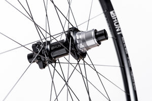 Rims29 rim 24mm internal width. 6069-T6 heat-treated aluminium alloy (+69% tensile strength vs 6061-T6) Tubeless-ready – designed to work best with tubeless tyres. Tubeless rim tape and valves included. H-lock bead-seat up-kicks for easy and secure tubeless installation. Matt black work-hardened shot-peened finish with laser etched graphics for superior durability.