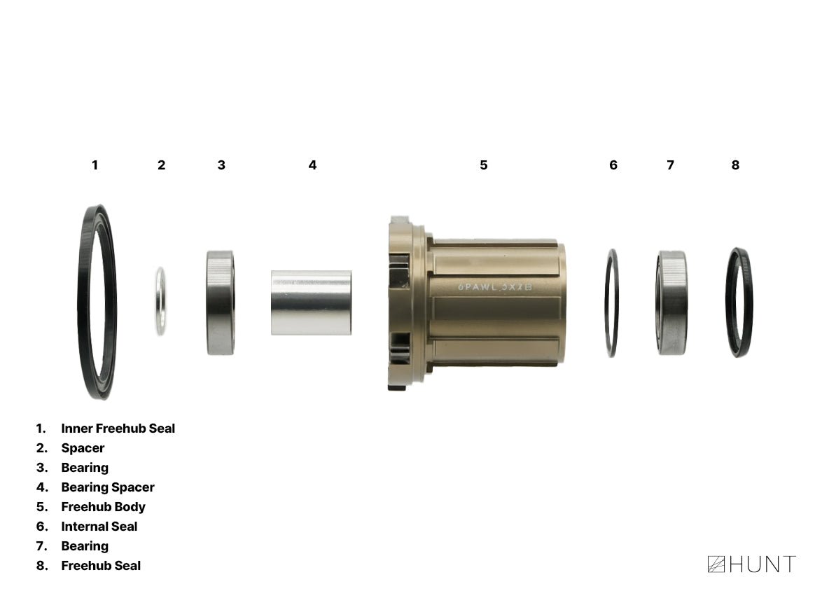 For an expanded view of the freehub, which shows it's individual parts, please see the image gallery. Note: Not all parts of the freehub seen in the expanded view are available to purchase separately.
